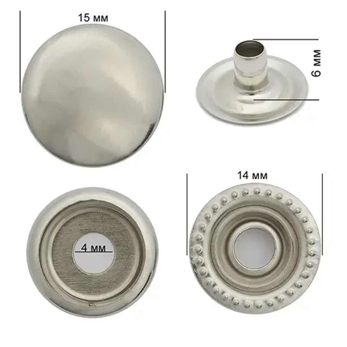 Кнопка Київська (Каппа) 15 мм Нікель, 50 шт
