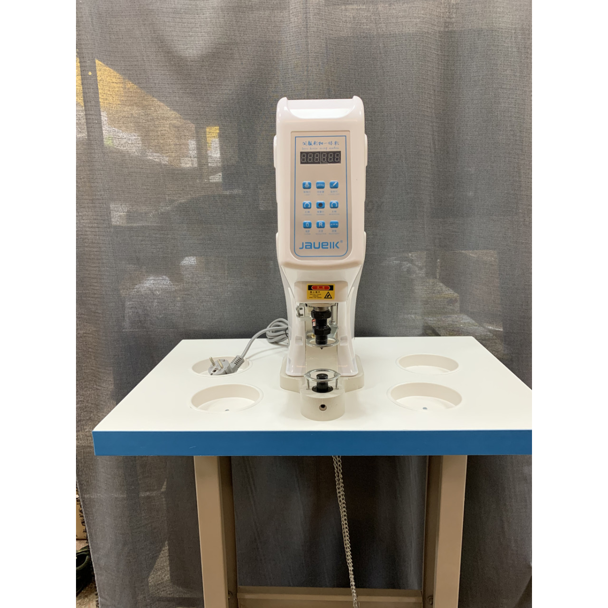 Електричний прес JAOUEIK 818 із сервомотором – сучасний пристрій, який полегшує та прискорює встановлення фурнітури на текстиль, шкіру та інші матеріали. Завдяки точності та силі натискання прес підходить для дрібносерійного та масового виробництва.